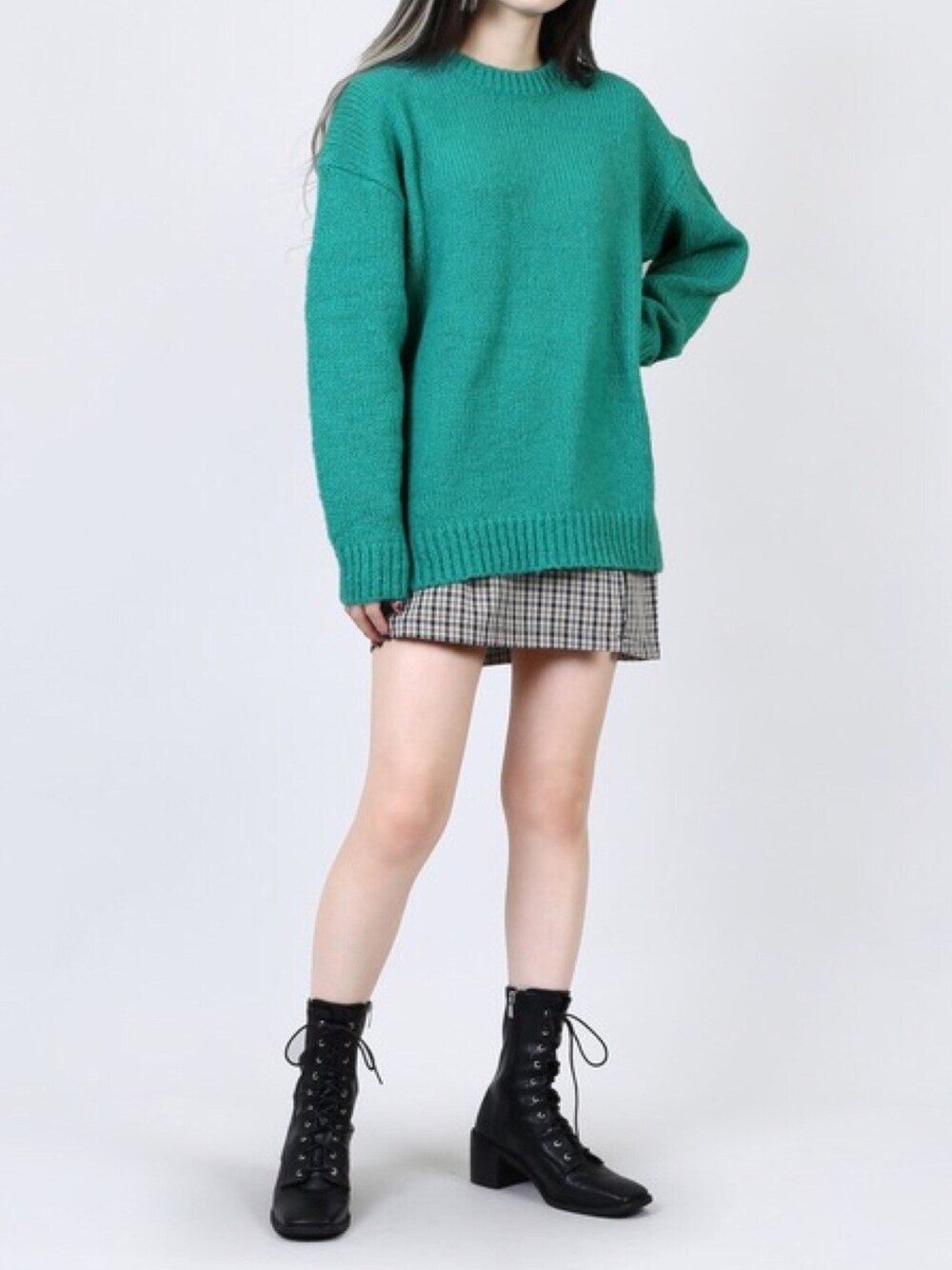 カラーセーター color:green/blue size:free チェック柄ミニスカパン color:beige/green size:free