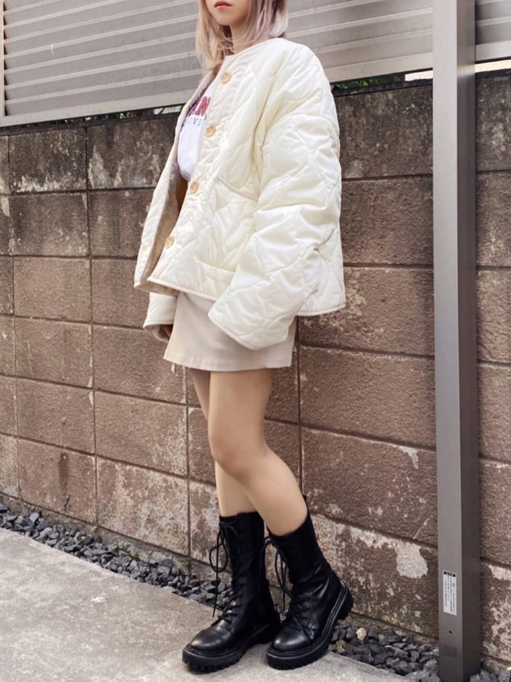 裏ボアキルティングジャケット color:off white/beige size:free ベルト付きミニスカート color:beige/black size:free