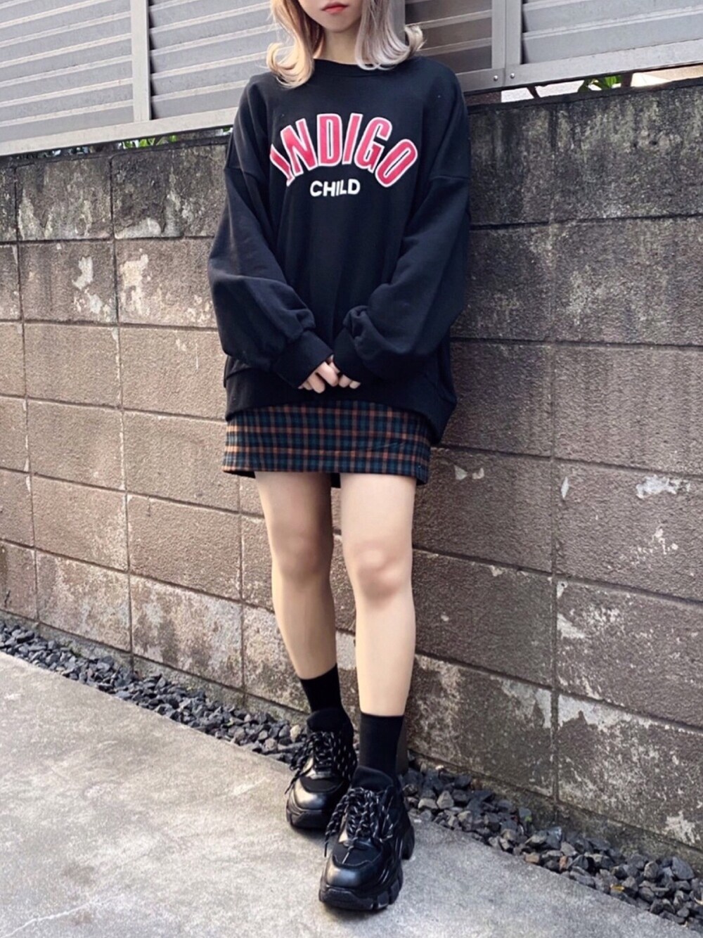 INDIGOスウェット color:black/off white/red size:free チェック柄ミニスカート color:dark green/beige size:free