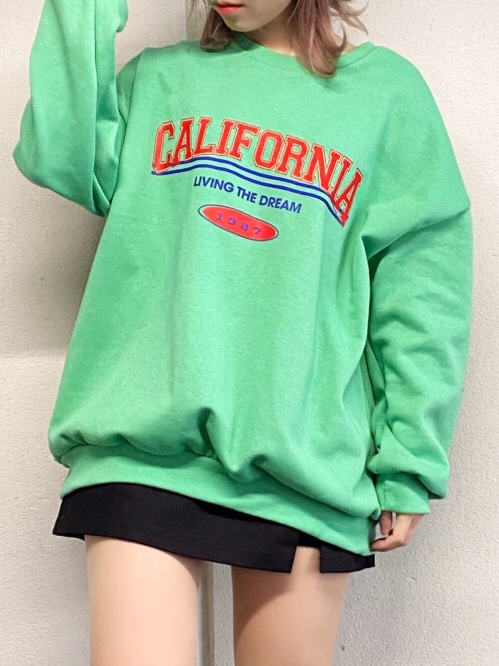 グリーン系のスウェットを着用したレディースの冬コーディネートの1枚目の写真