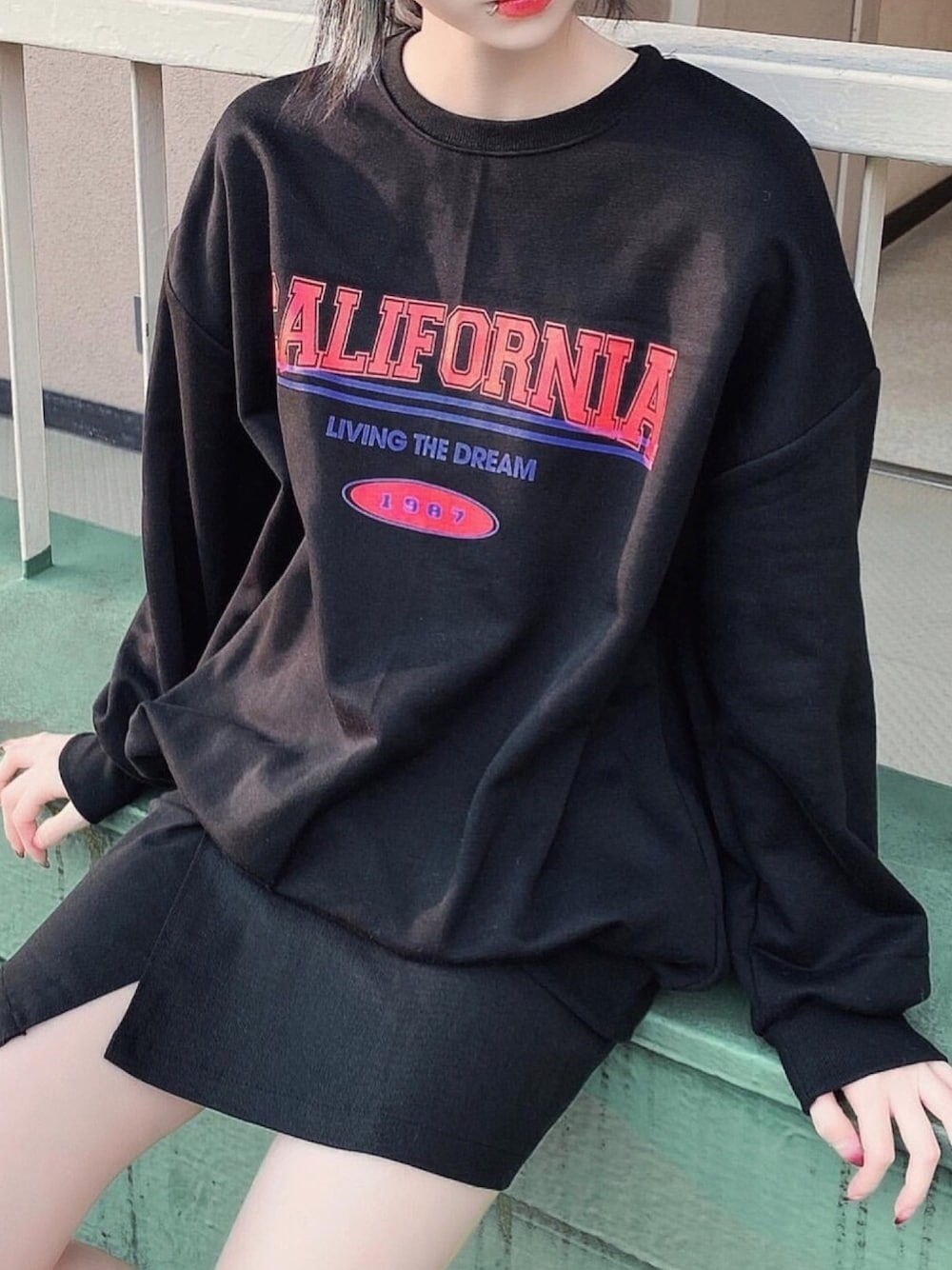 ブラック系のスウェットを着用したレディースの冬コーディネートの1枚目の写真