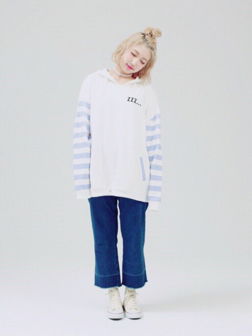 袖ボーダー×デニム☆ ●Zzz袖ボーダーパーカー ¥4,990→¥3,990+tax SIZE FREE ●グラデーションデニムパンツ ¥5,990+tax SIZE S/M ●フラワーチョーカー ¥590+tax