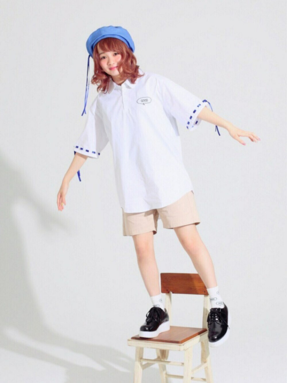 ◎marine look◎ ●リボン付きベレー帽 ¥2,590+tax ●リボン付きプルオーバーシャツ ¥4,990+tax SIZE S/M ●チノショーパン ¥4,990+tax SIZE S/M ●GOOD総柄ソックス ¥990+tax