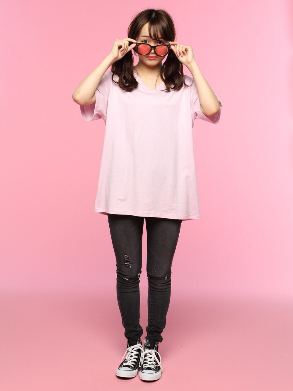 スリーブロゴVネックTシャツ color:l.pink/sax/black size:XL