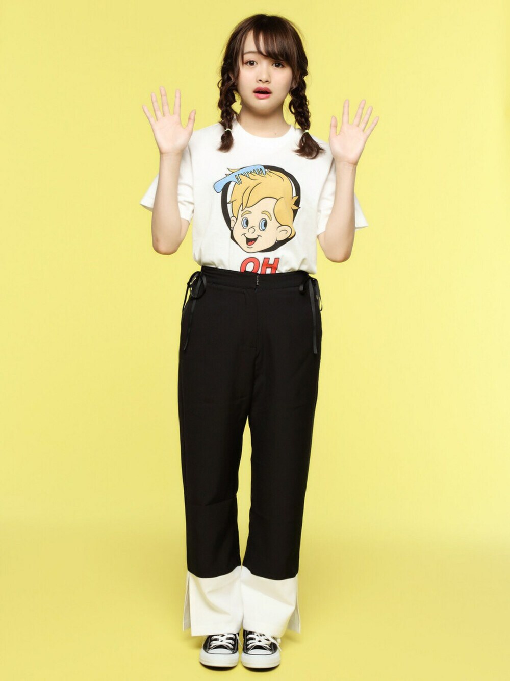 ピーターTシャツ color:white/black size:S/M バイカラースリットパンツ color:black/sax size:S/M