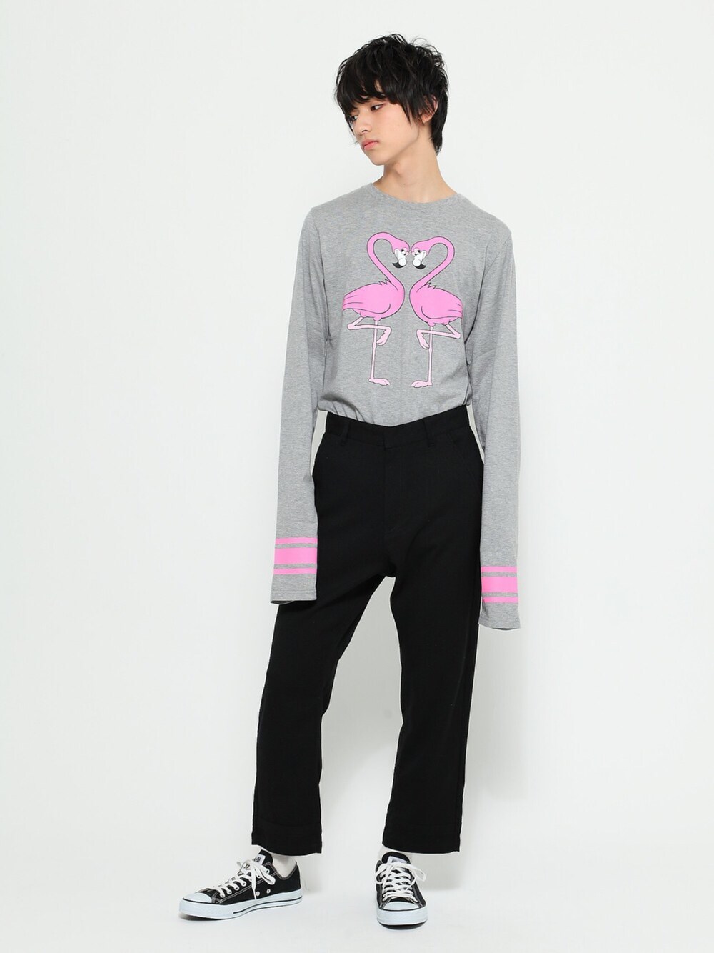 DING_officialのTシャツ/カットソー「DING/フラミンゴロングTシャツ」を使ったコーディネート