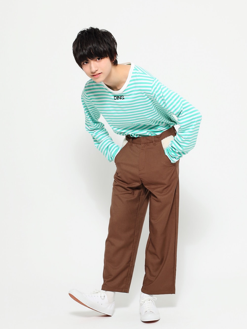 ワンポイントボーダーロンTee color:green/pink/black size:S/M Fボアポケスラックス color:brown/gray size:S/M グリーン×ブラウン♪ アニマレトロなカラーリング✴︎