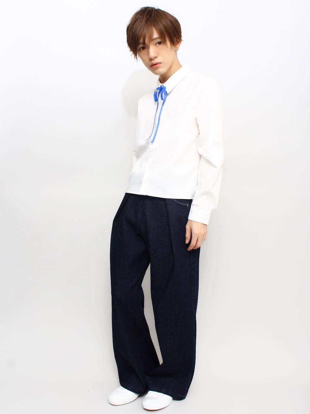 DING_officialのシャツ/ブラウス「DING/ベロアリボン付きショート丈シャツ」を使ったコーディネート