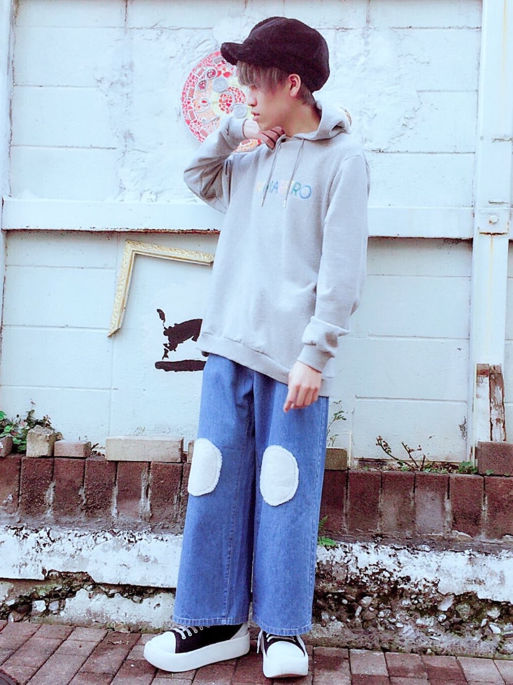 フェイクファーキャスケット color:black ANIMARETROパーカー color:white/gray/black size:S/M フェイクボアパッチデニムパンツ color:indigo/lightindigo size:S/M アニマレトロのストリートな着こなし✴︎ キャスケットは即完売の 大人気アイテム!要チェックです☆