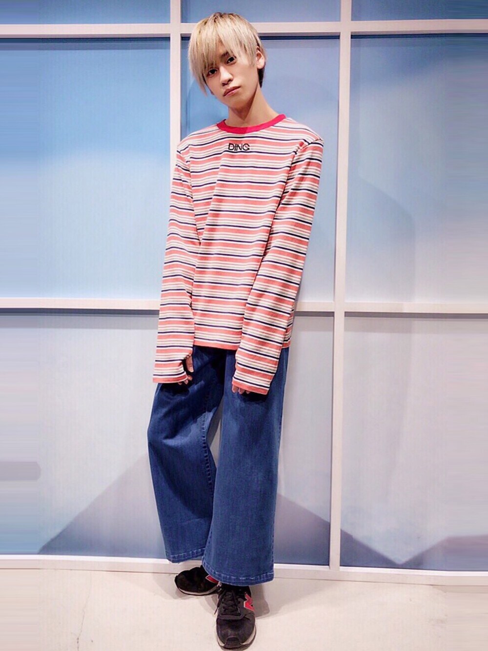 DING_officialのTシャツ/カットソー「DING/マルチボーダーロングスリーブカットソー」を使ったコーディネート