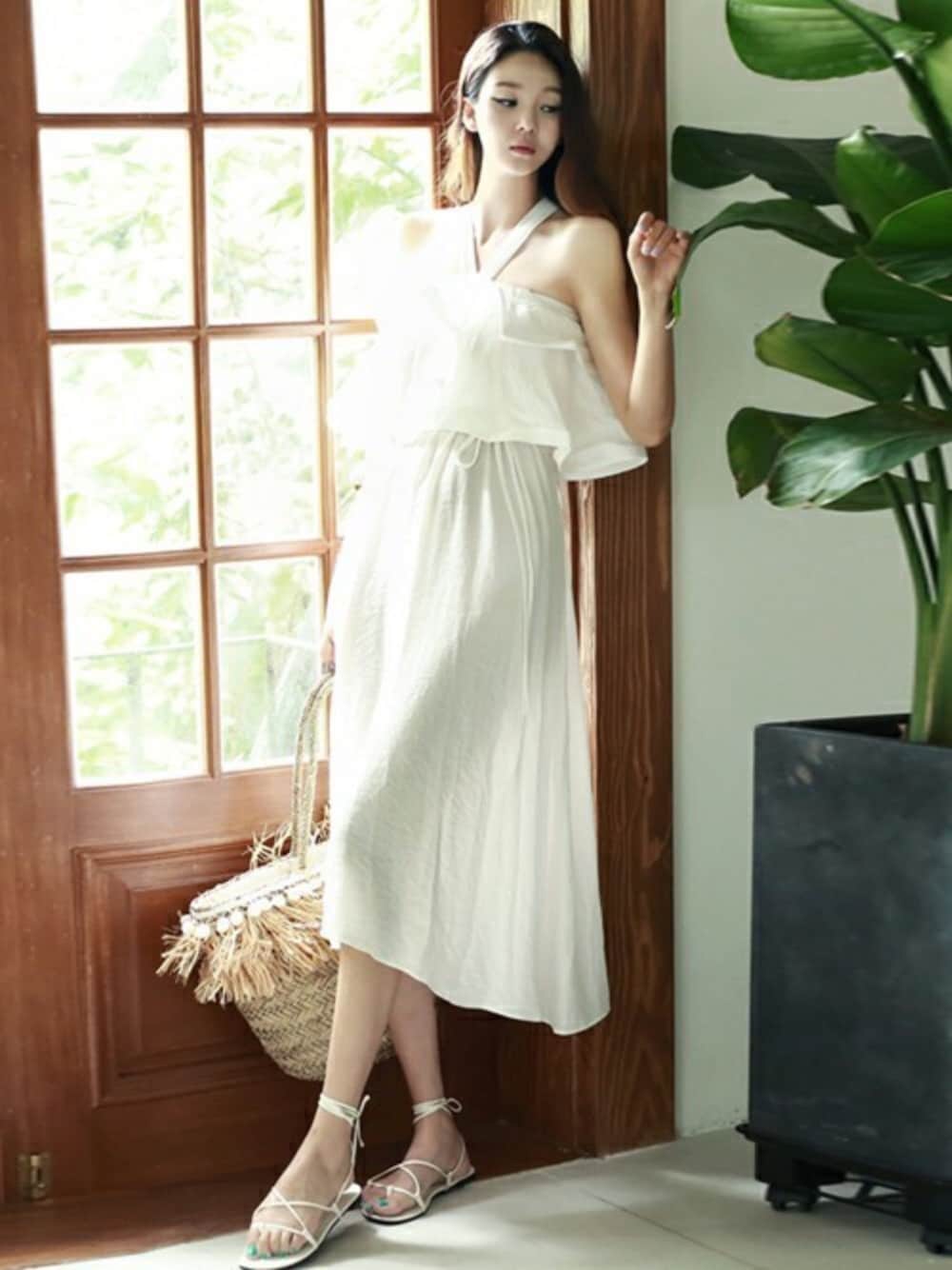 DINTのワンピース「バーネットラッフルラインワンピース(ベルトset)」を使ったコーディネート