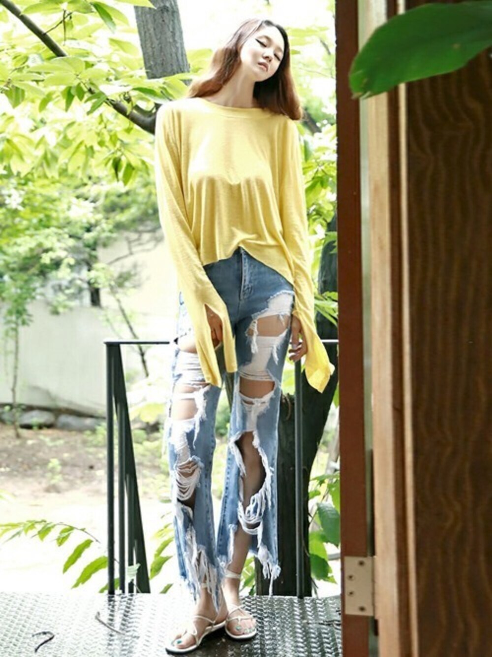 ベーシックティーとビンテージジーンズをマッチして華やかなアクセサリーがなくても、トレンディな感じを演出できるビンテージデイリールックです。