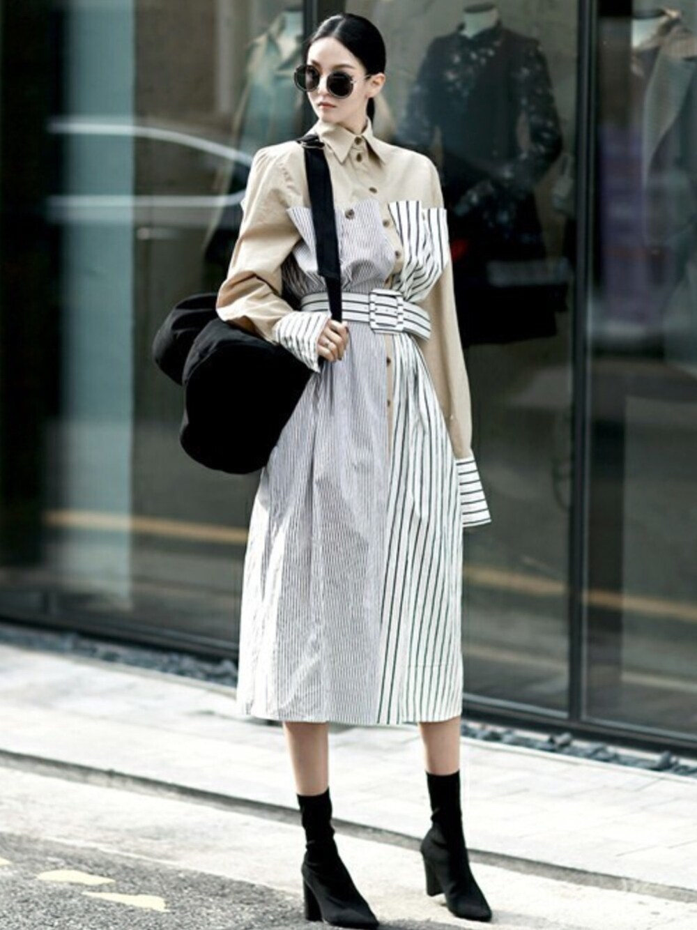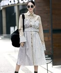 DINTのシャツワンピース「セリーヌストライプポイントシャツワンピース(ベルトset)」を使ったコーディネート