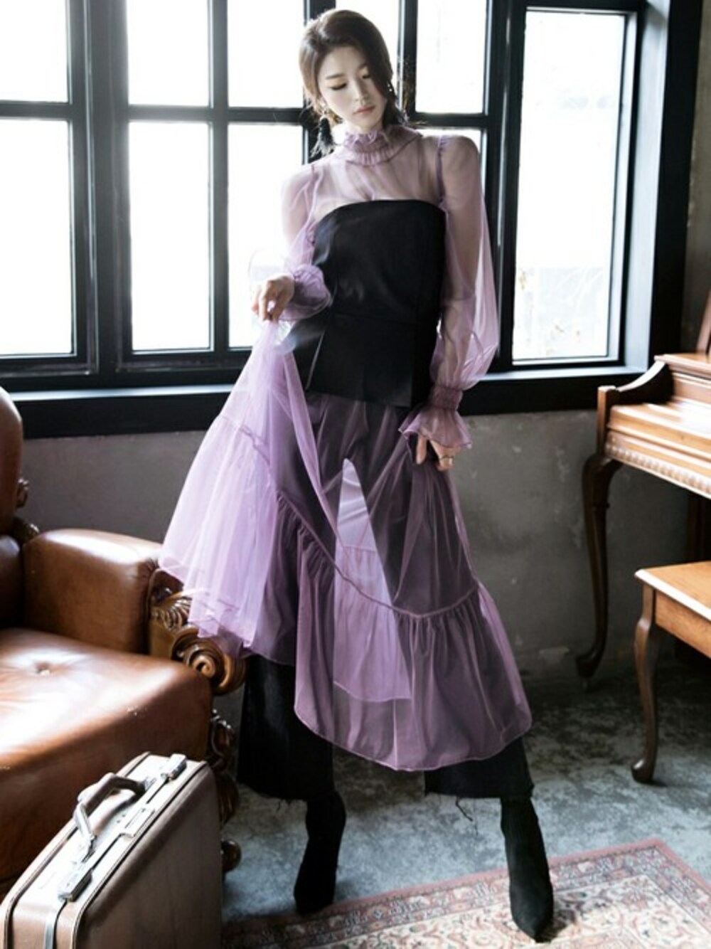 DINTのワンピース「メリーシーツルーネットワンピース」を使ったコーディネート
