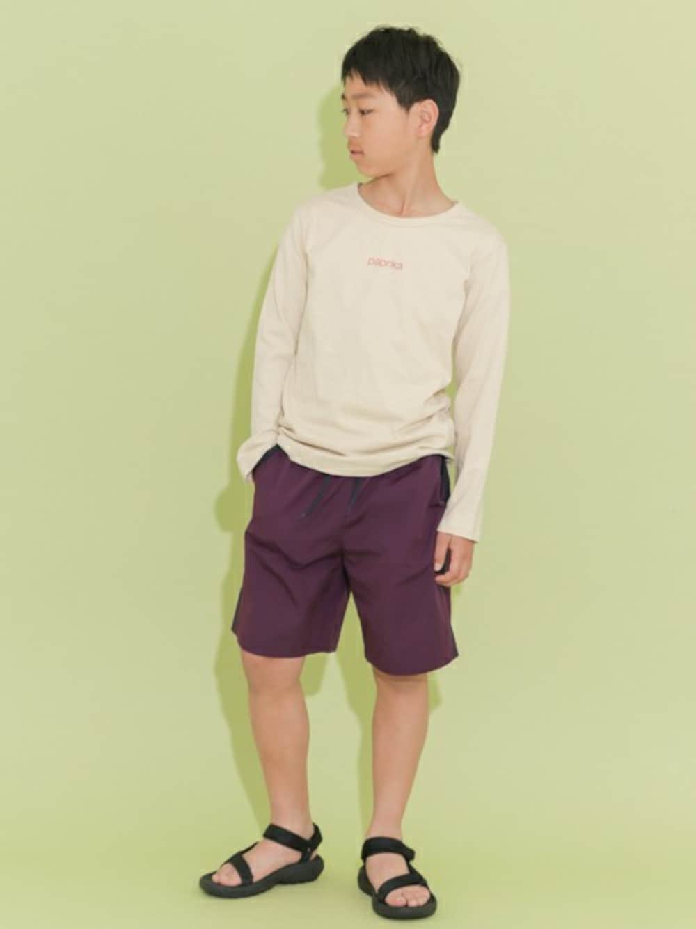 ベージュ×パープルのニュアンスカラーでつくる程よく力の抜けたカジュアルボーイズコーデ☆ 小さく施したさりげないロゴプリントが今年らしいポイント。 <2019SS Junior Size by DOORS> ベーシックで着回しやすいアイテムを中心に、兄弟でお揃いで着られるものから大人のデザインをそのまま落とし込んだリンクアイテムまでラインナップ。ぜひオンラインストアにてご覧くださいませ。