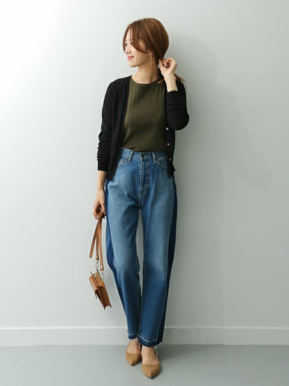 DOORS WOMENSのカーディガン/ボレロ「ハイツイストVネックカーディガン」を使ったコーディネート