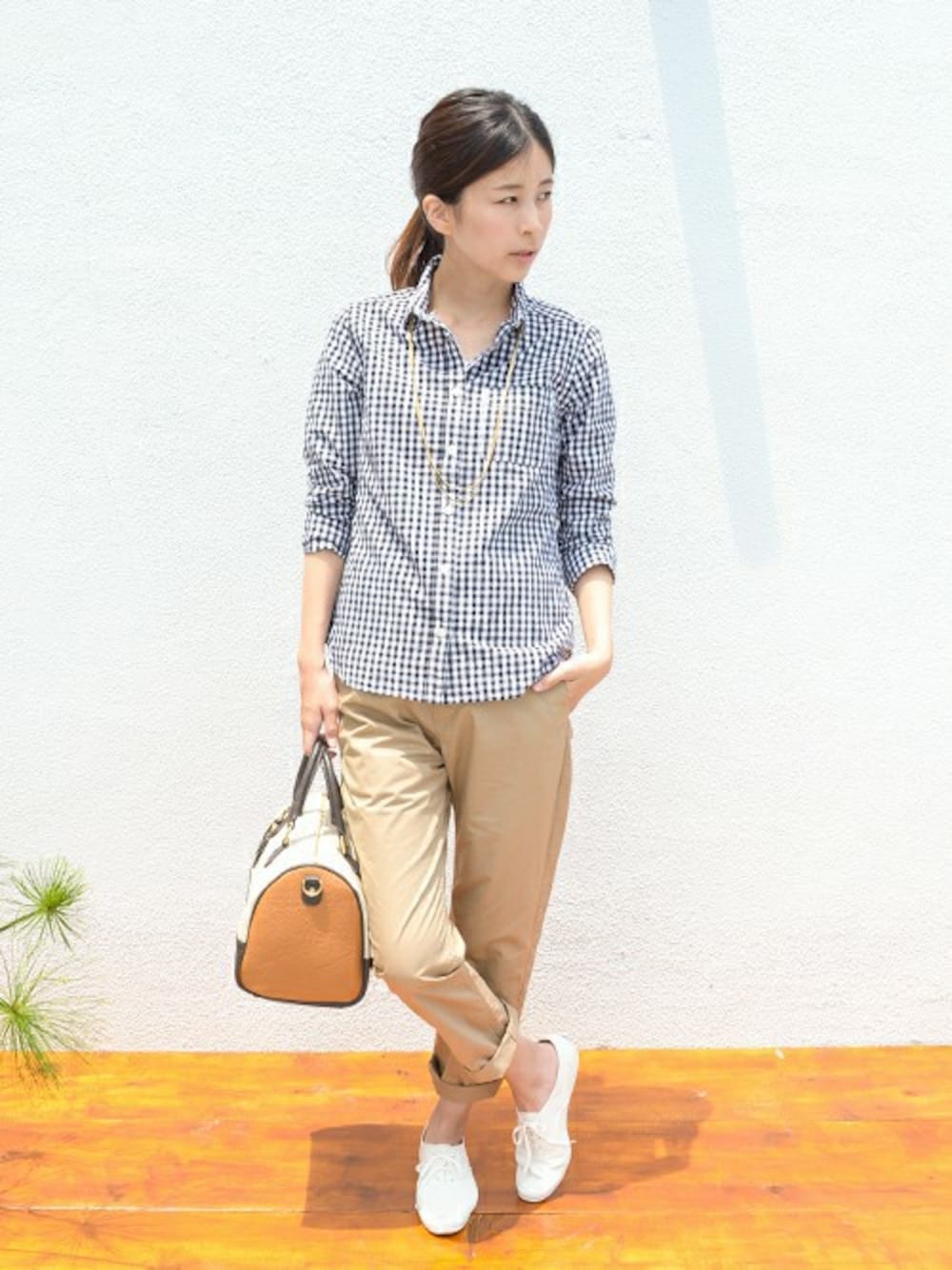 DOORS WOMENSのチノパンツ「DOORS コットンダンプ9分丈パンツ」を使ったコーディネート
