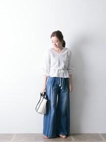 DOORS WOMENSのスカート「コットンギャザーフレアマキシスカート」を使ったコーディネート