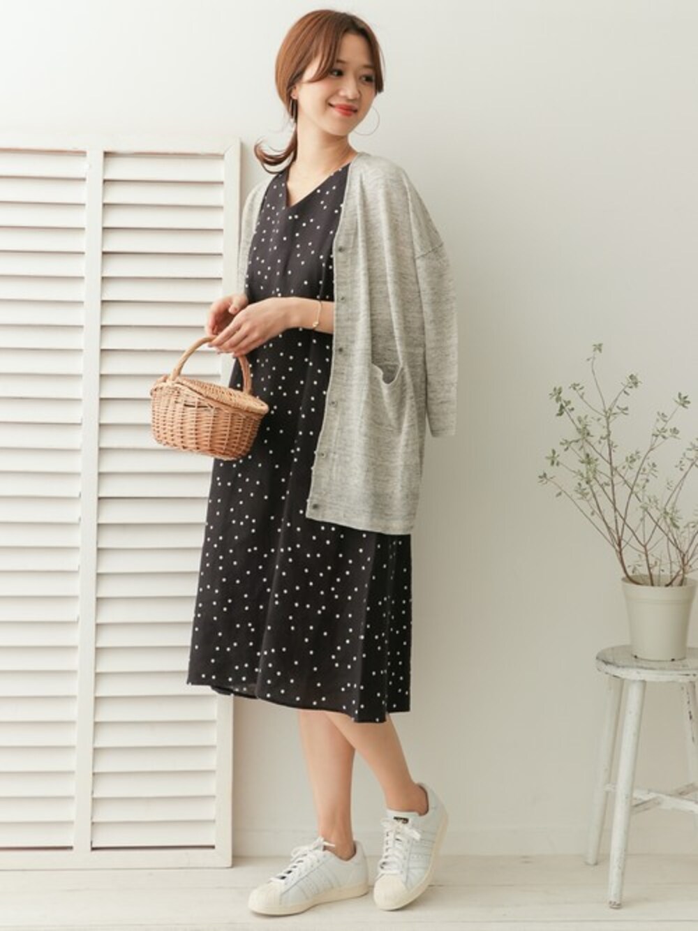 DOORS WOMENSのワンピース「リネンドットVネックワンピース」を使ったコーディネート