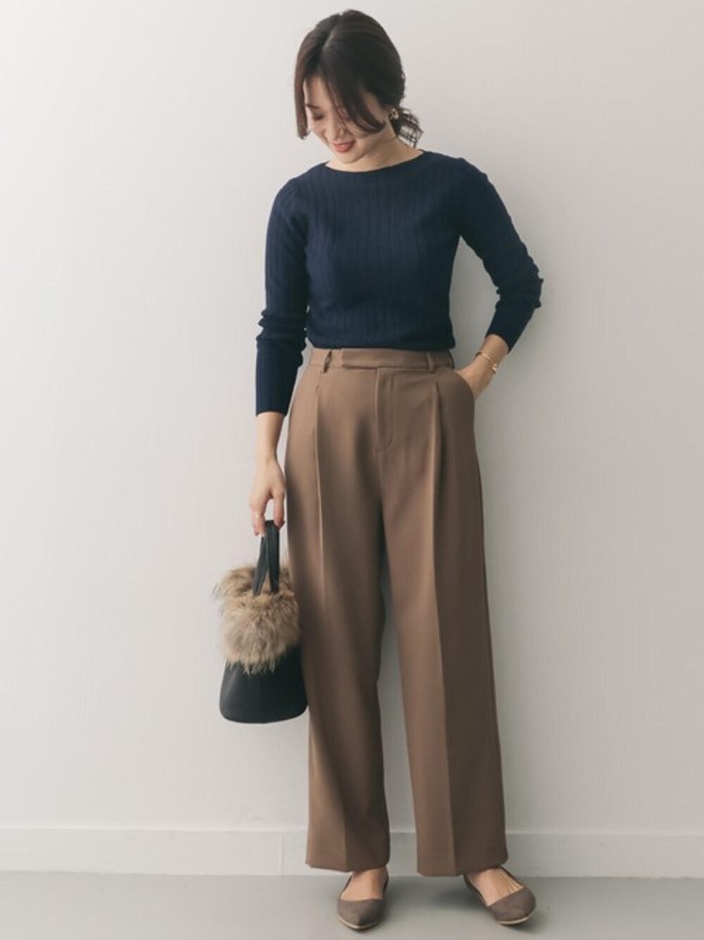 DOORS WOMENSのニット/セーター「ランダムリブボートネックニット」を使ったコーディネート