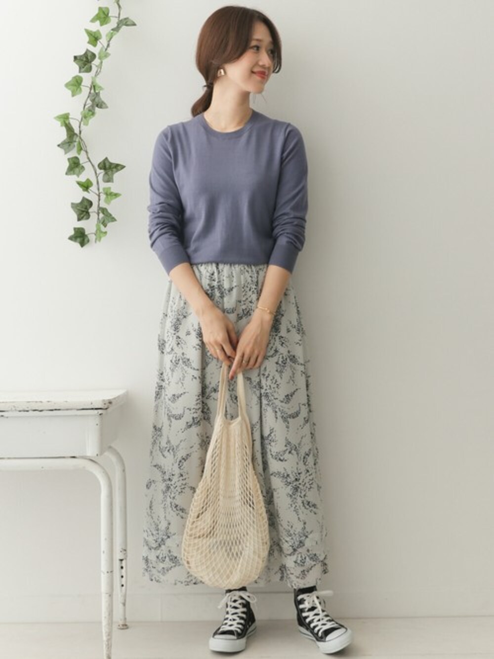 DOORS WOMENSのニット/セーター「コットンクルーネックプルオーバーニット」を使ったコーディネート