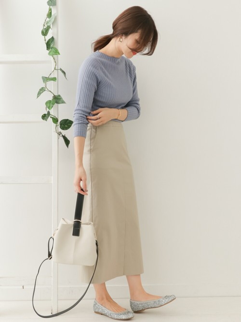 DOORS WOMENSのニット/セーター「コットンレーヨンシルクリブボートネックニット」を使ったコーディネート