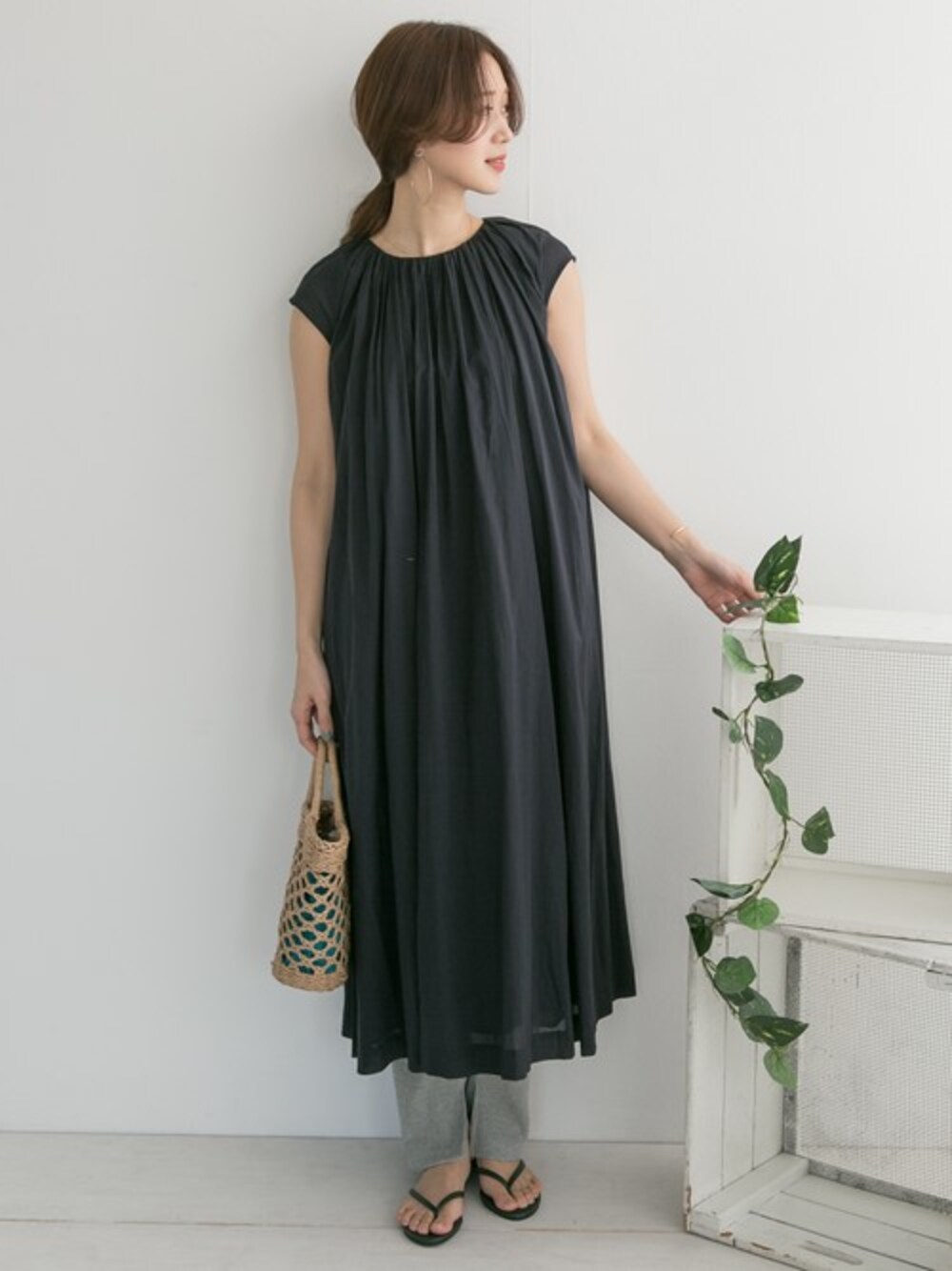 DOORS WOMENSのワンピース「コットンボイルノースリーブギャザーワンピース」を使ったコーディネート