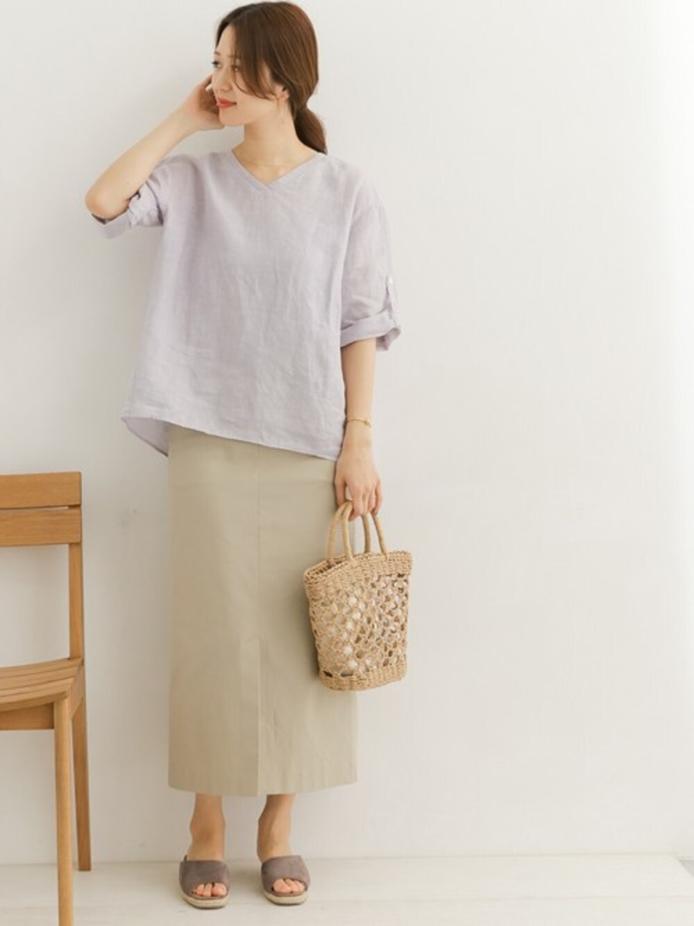 DOORS WOMENSのTシャツ/カットソー「リネンロールUPスリーブブラウス」を使ったコーディネート