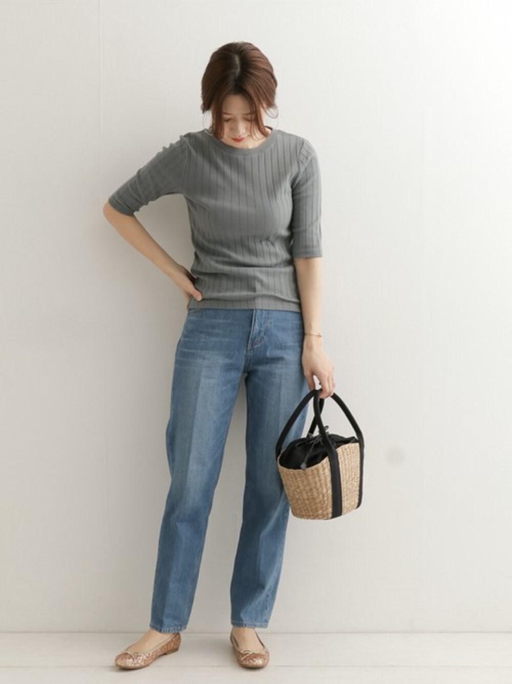 DOORS WOMENSのTシャツ/カットソー「針抜き6分袖ボートネックカットソー」を使ったコーディネート