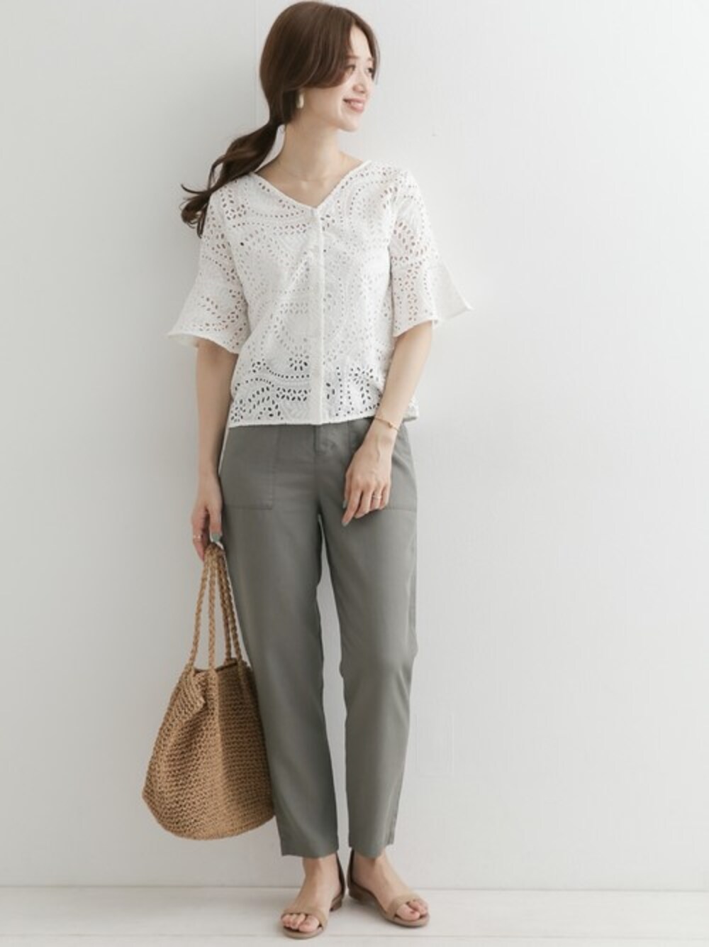 DOORS WOMENSのシャツ/ブラウス「アイレット刺繍2wayブラウス」を使ったコーディネート
