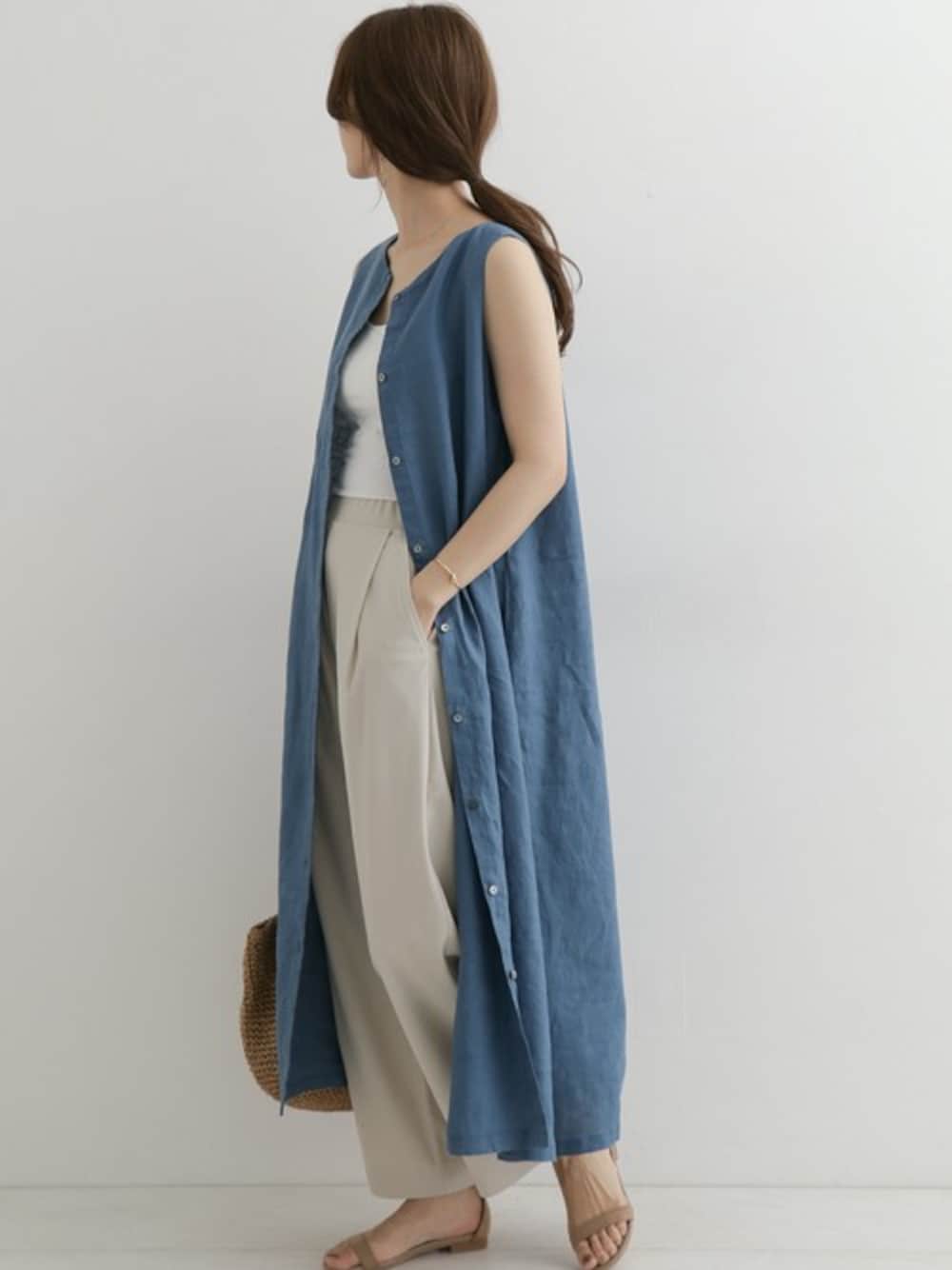 DOORS WOMENSのワンピース「リネン2WAYノースリーブフレアワンピース」を使ったコーディネート