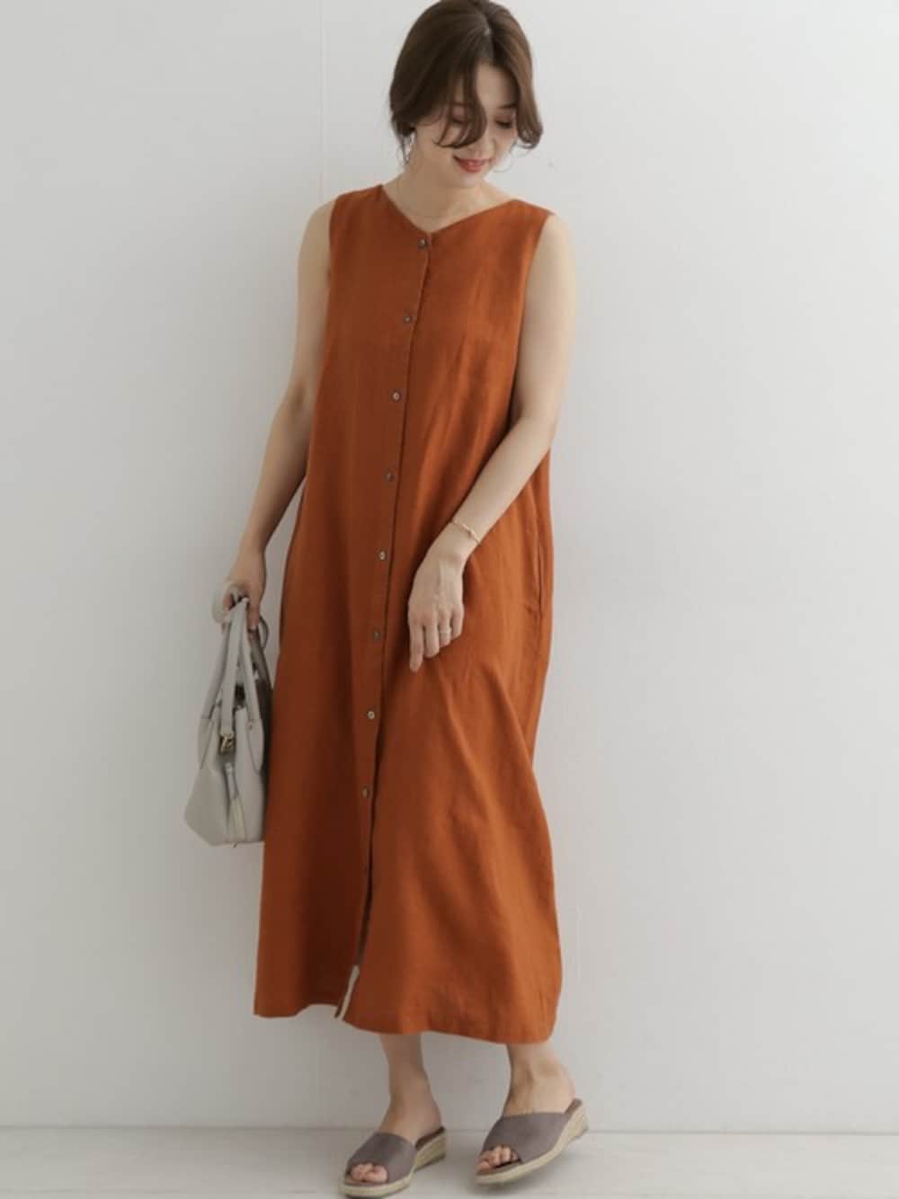 DOORS WOMENSのワンピース「リネン2WAYノースリーブフレアワンピース」を使ったコーディネート