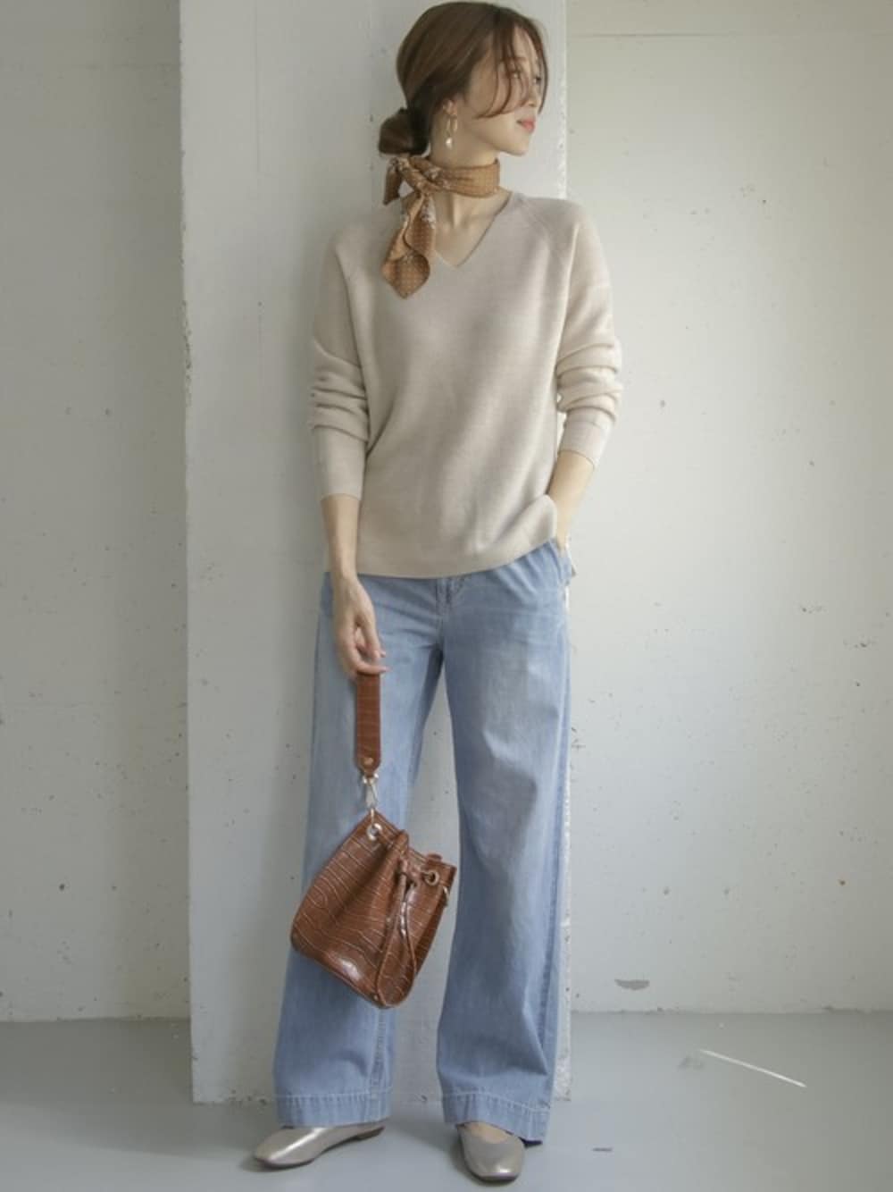 DOORS WOMENSのニット/セーター「ウール畦Vネックニット」を使ったコーディネート