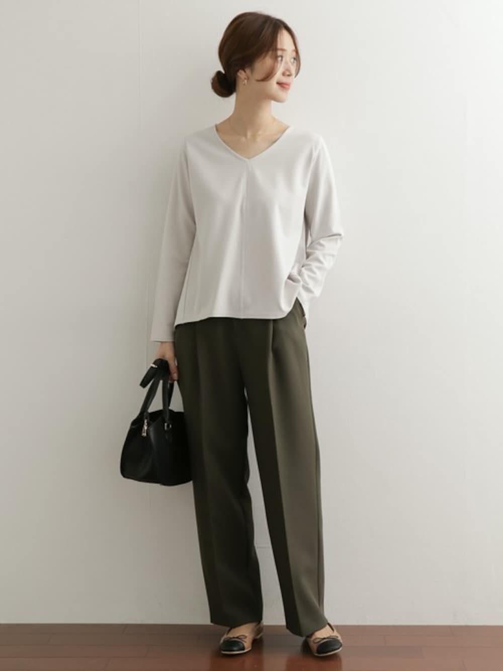 DOORS WOMENSのTシャツ/カットソー「ポンチVネックバックフレアプルオーバー」を使ったコーディネート