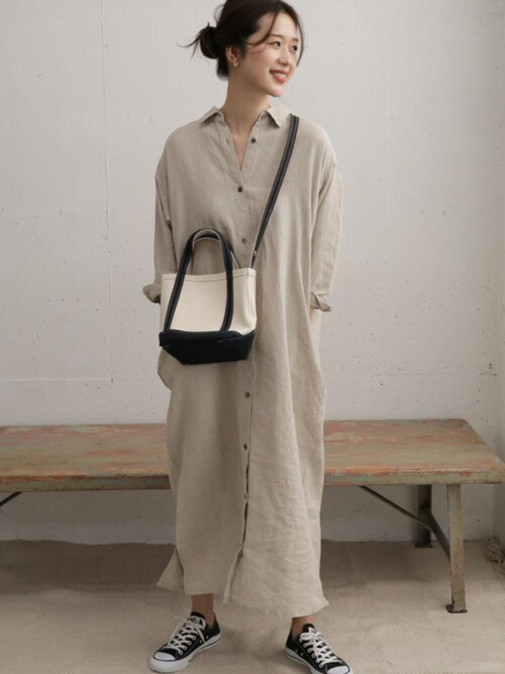 DOORS WOMENSのワンピース「リネンバックタックシャツワンピース」を使ったコーディネート
