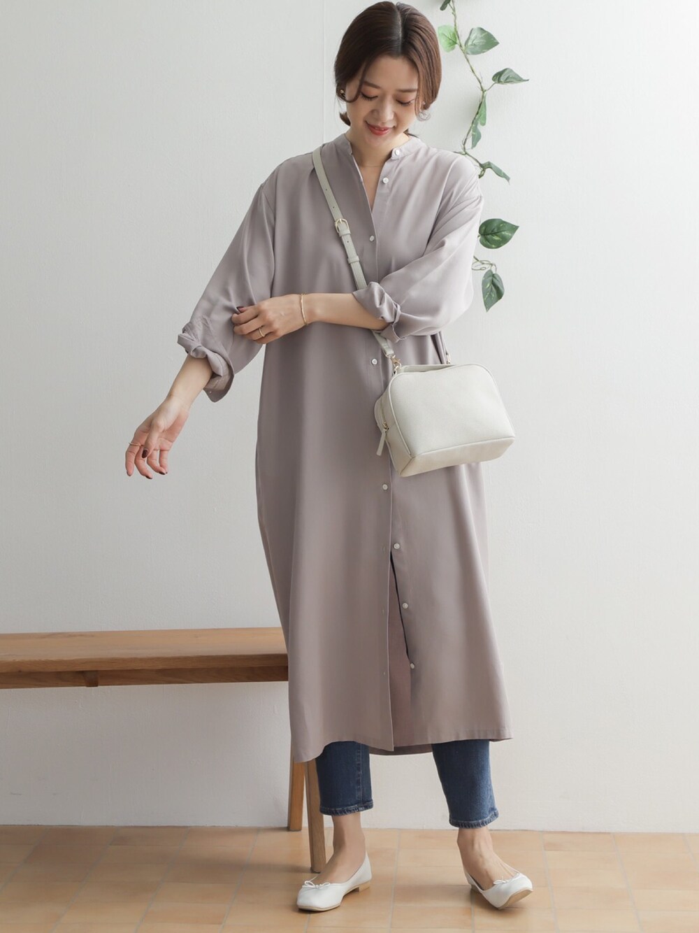 DOORS WOMENSのワンピース「リヨセルスタンドカラーシャツワンピ」を使ったコーディネート