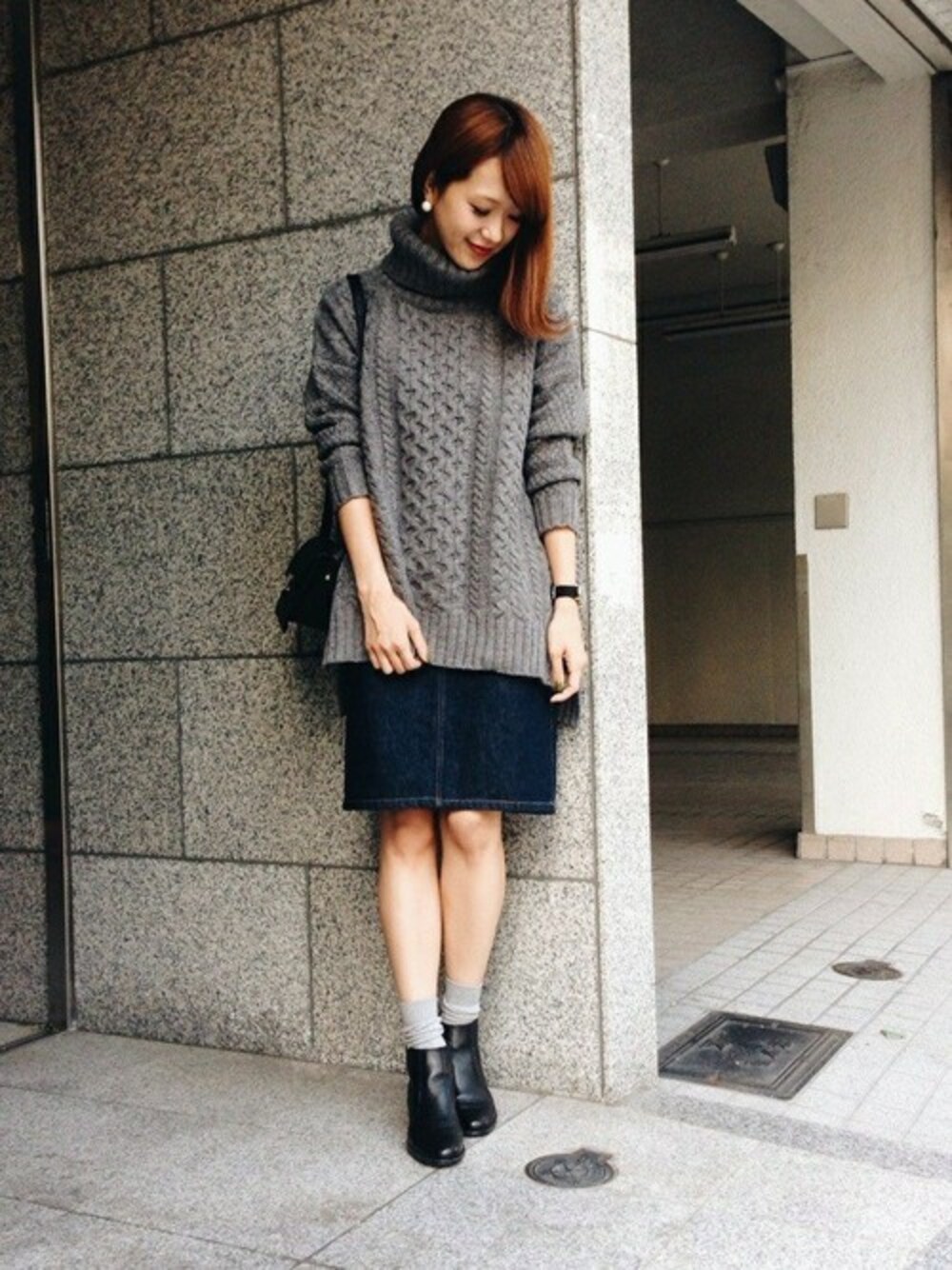 DOORS WOMENS(URBAN RESEARCH DOORS)のニット/セーター「DOORS アラン柄タートルチュニックニット」を使ったコーディネート