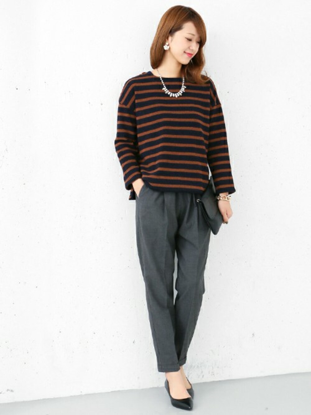 DOORS WOMENSのTシャツ/カットソー「DOORS ウールボーダーボートネックプル」を使ったコーディネート