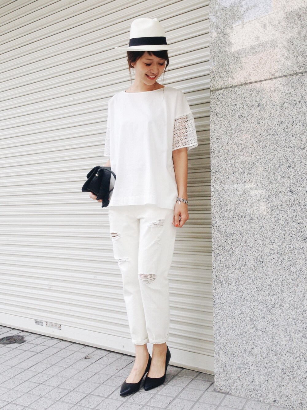 DOORS WOMENSのシャツ/ブラウス「DOORS 袖レース切替チュニックブラウス」を使ったコーディネート