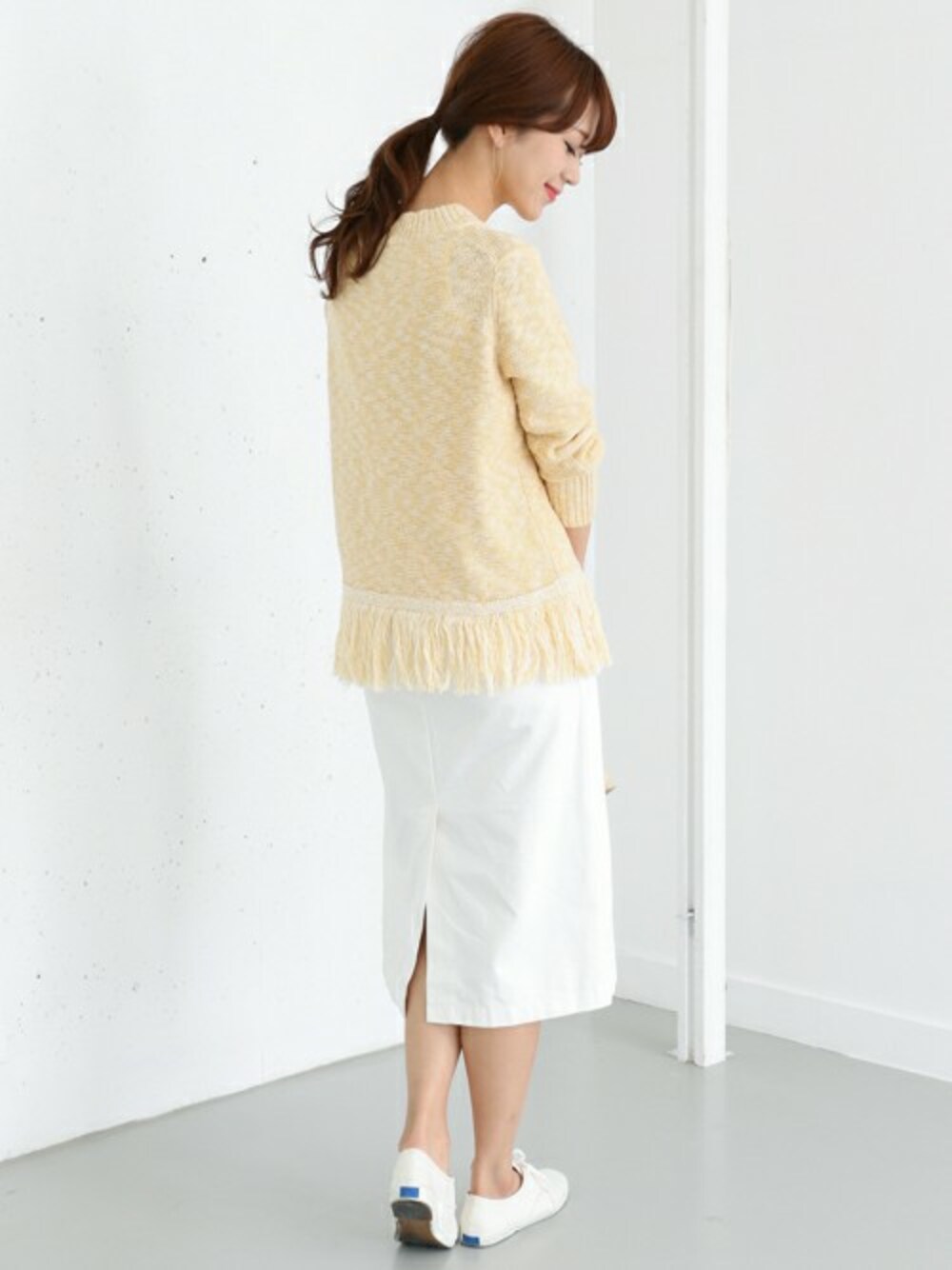 DOORS WOMENSのニット/セーター「DOORS コットンスラブフリンジニット」を使ったコーディネート