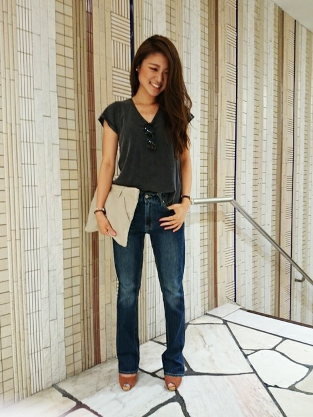 ゆったりめのVネックのTシャツにバギーパンツを合わせた、シンプルカジュアルスタイル。 ラフなシルエットでこなれ感がありつつも、細みのボトムでスタイルアップが叶います★ 小物にサングラスやミリタリー調のクラッチBAGを合わせて、辛口要素をプラスすれば 気負わない、こなれカジュアルスタイルの完成です。