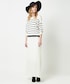 JJコラボのダッフルコートをメインに、マキシ丈のスカートで大人なコーディネート。 ダッフルのファーはフォックスで手触りがとても良く、落ちついたカラーなのも魅力的。 中のボーダーニットは、コートに合わせてカーキに。全体の色味をカーキ・ホワイト・ブラウンの3色にして、すっきりとまとめました。