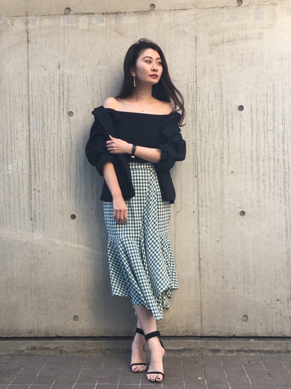 #ootd #outfit 《Gingham check》 甘めなギンガムスカートに、 オーバーサイズめな フードつきミリタリージャケットを ゆる〜く着て sweet work casual STYLE😋✨ --------------------------------------- #DRWCYS#ドロシーズ #DRWCYSコーディネート