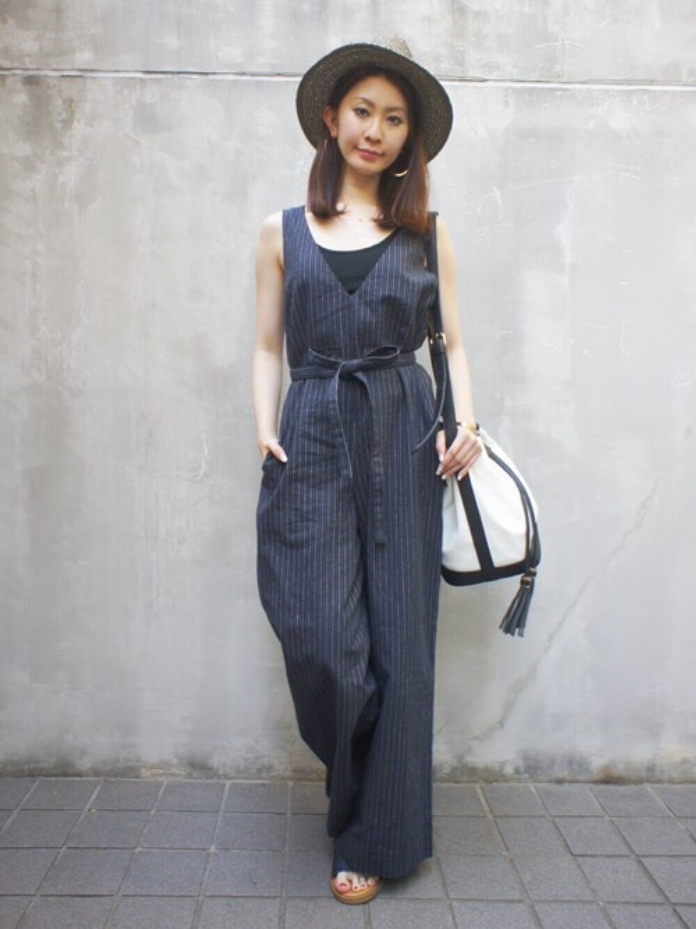 DRWCYS・PR 生駒典子のつなぎ/オールインワン「ストライプオールインワン」を使ったコーディネート