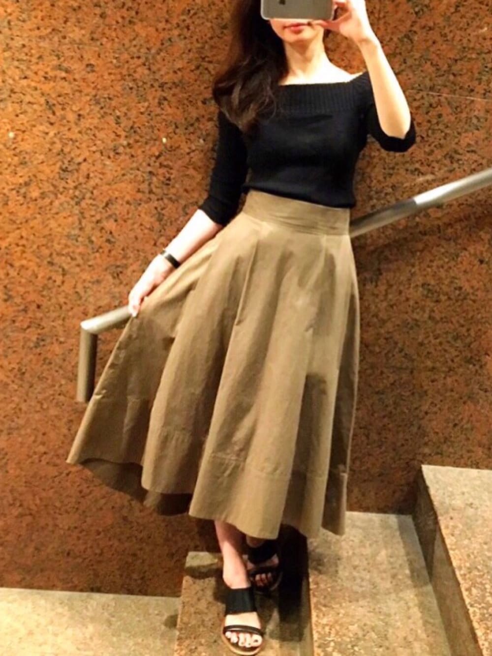 Today's outfit✨ 今日は神戸コレクションのリハーサルでした! 大大大人気の タイプライタースカート! ハリ感、ボリューム感が絶妙、 ウエストもキュッとスタイルUP見えで 絶対オススメな1枚✨ #skirt & #tops→#DRWCYS #スカート#トップス #offshoulder#オフショルダー#オフショル #khaki#カーキ#black#ブラック #outfit#ootd #coordinate #DRWCYScoordinate