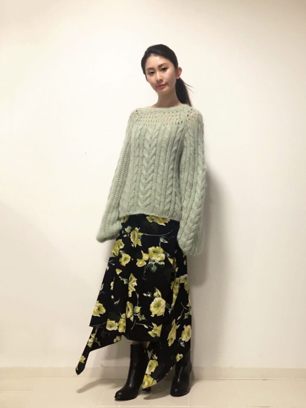 DRWCYS・PR 生駒典子のニット/セーター「モヘア混ケーブルニット」を使ったコーディネート