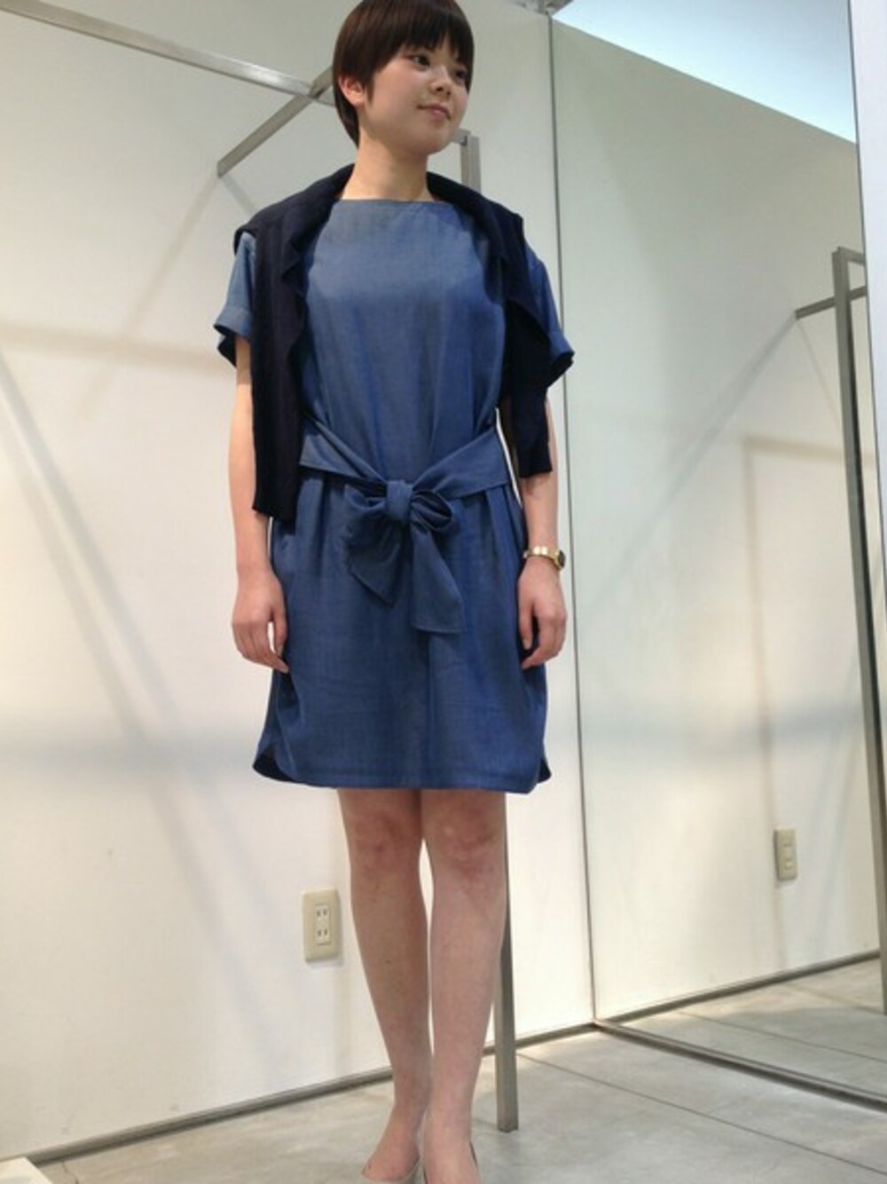 スタッフのワンピース「2wayテンセルデニムフロントリボンワンピース」を使ったコーディネート