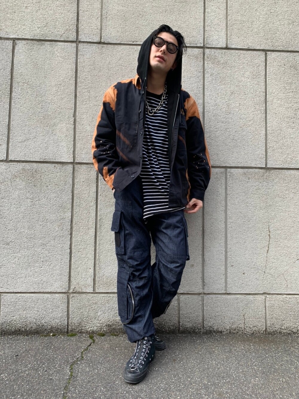 Dadaのシャツ/ブラウス「メンズ シャツ ブリーチ プリント コットン 長袖 ミリタリー」を使ったコーディネート