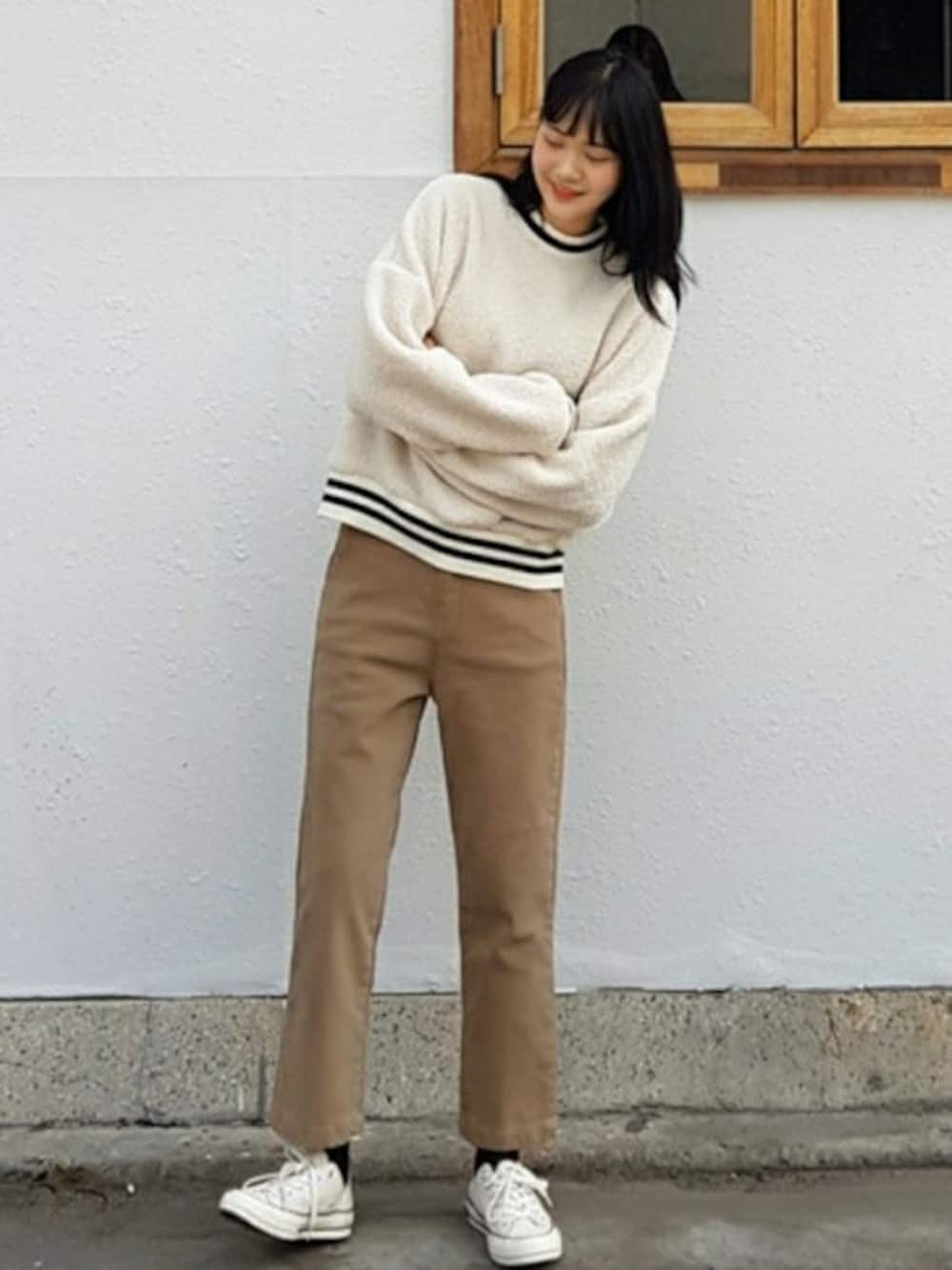 2018年の秋冬はボアを使ったカジュアルテイストなトップスがおすすめ👍 こちらのボアスウェットは、ハリのある素材を使用しているのでへたれず🎈 暖かみとボリュームのあるシルエットに仕上げてくれるアイテム💎 粗めの毛並みがテディベアのようで可愛らしいですよね😊😊 袖部分がリブになっているので、風も通しにくいのが嬉しいですね🔥 個性的な配色ラインポイントでおしゃれ感アップ🎵 さらにベージュ系のストレートパンツでアクセントをプラスして、 可愛すぎずに少しボーイッシュなコーデに✨✨ スッキリとしたストレートシルエットが美脚効果も発揮🙌 お仕事じゃないオフの日はカジュアルな服装でさらに楽しむことができますよ😍