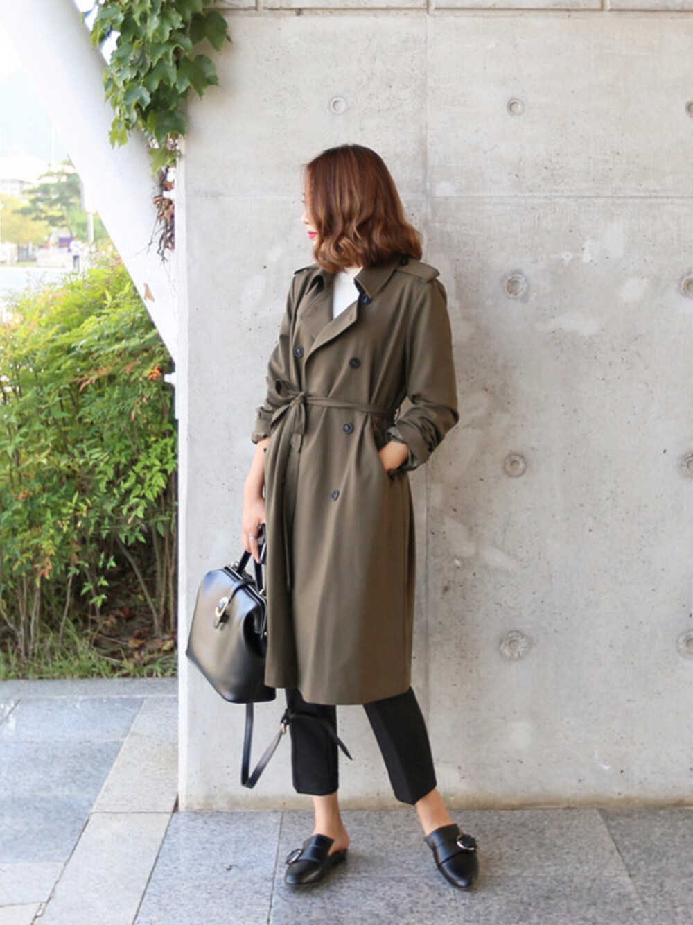 DAILYABOUTのトレンチコート「クラシックベルトポイントダブルボタントレンチコート(P0000VQK)」を使ったコーディネート